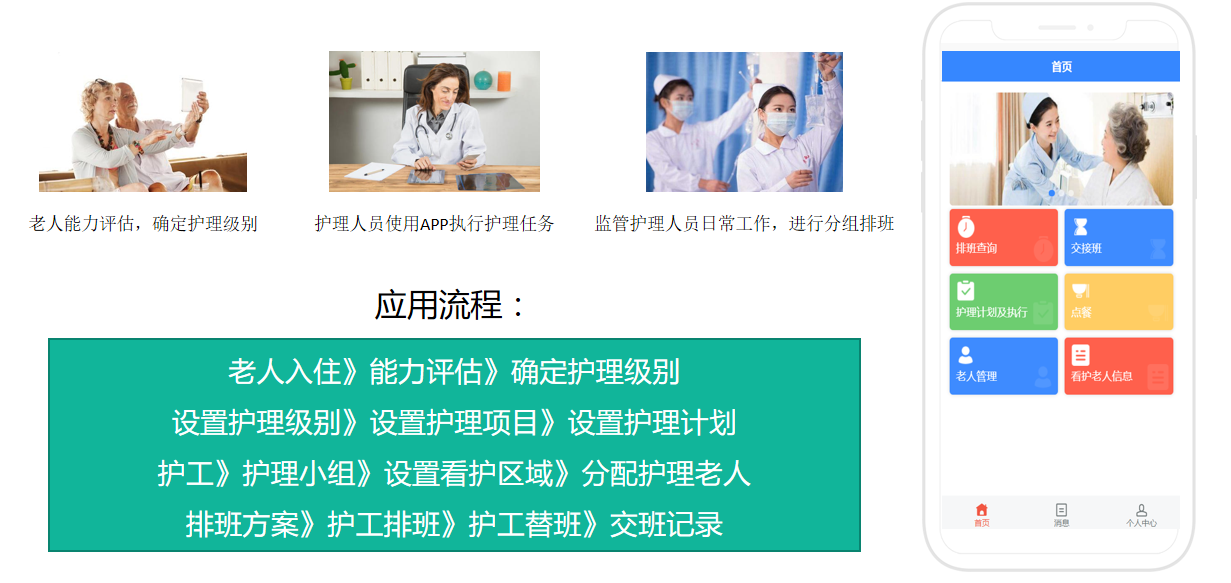 实现医养结合,医生和护士可以管理入住老人健康,下达和执行医嘱。